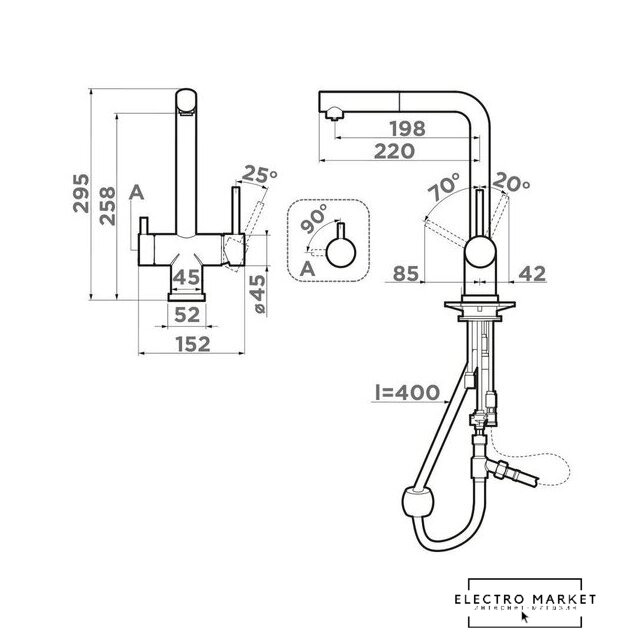 термостатический смеситель для мойки, монтаж на раковину или столешницу
