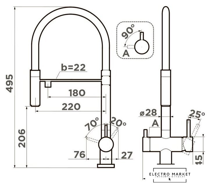 однорычажный смеситель для мойки, монтаж на раковину или столешницу