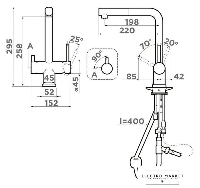 термостатический смеситель для мойки, монтаж на раковину или столешницу