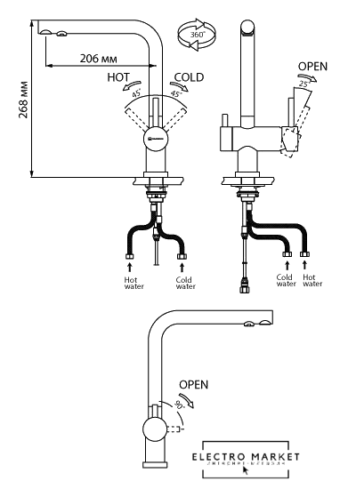 однорычажный смеситель для кухни, монтаж на раковину или столешницу
