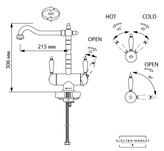 однорычажный смеситель для мойки, монтаж на раковину или столешницу