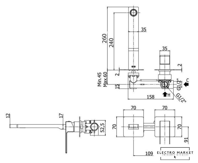 термостатический смеситель для ванны и душа, монтаж скрытый