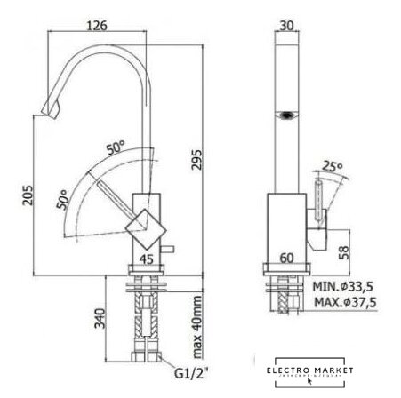 однорычажный смеситель для мойки, монтаж на раковину или столешницу