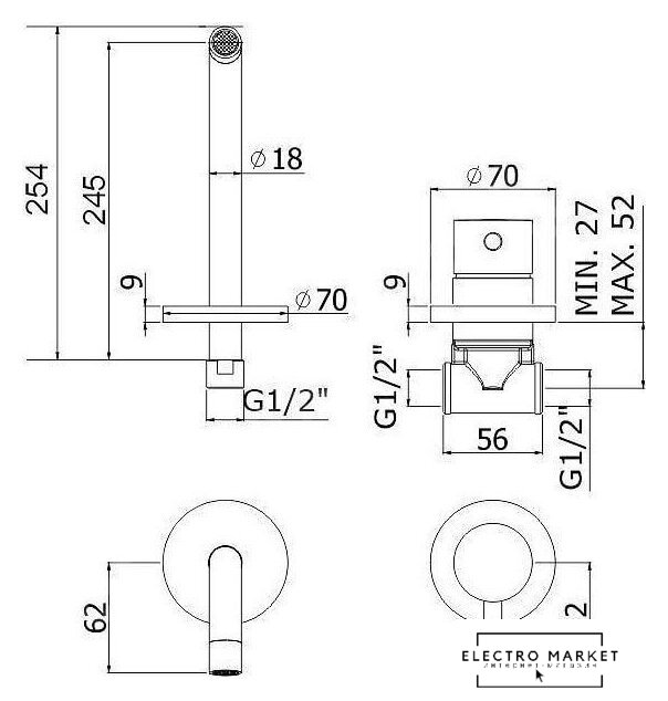 однорычажный смеситель для ванны и душа, монтаж на стену
