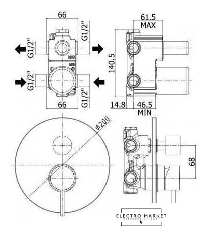 термостатический смеситель для ванны и душа/для душа, монтаж скрытый