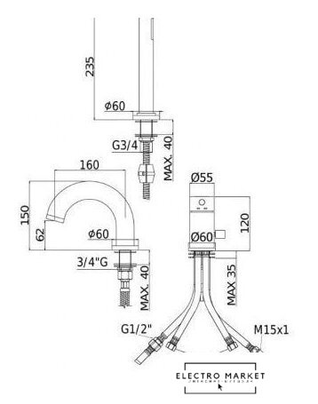 | Длина (вылет) излива | 160 мм |