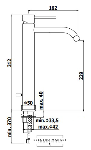 однорычажный смеситель для мойки, монтаж на раковину или столешницу