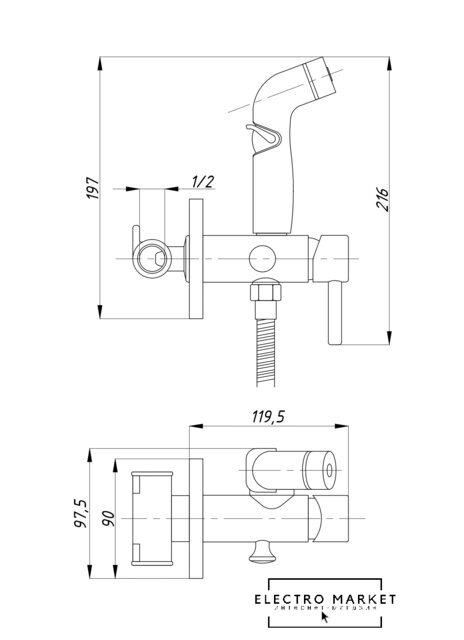 однорычажный смеситель для ванны и душа, монтаж скрытый