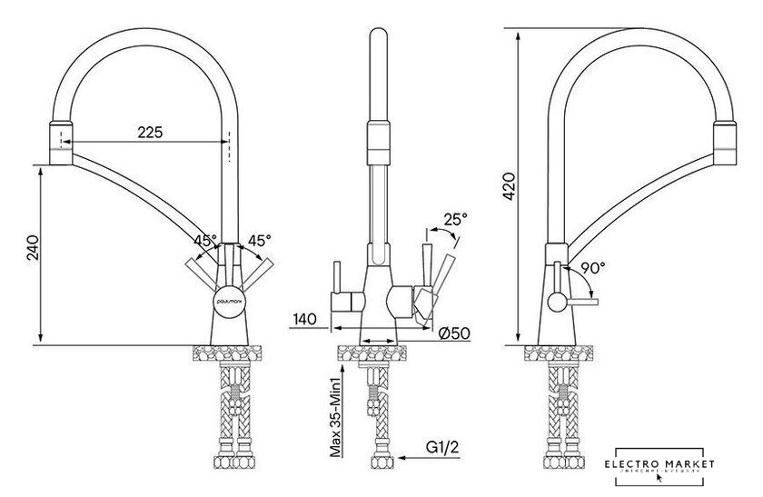однорычажный смеситель для кухни, монтаж на раковину или столешницу