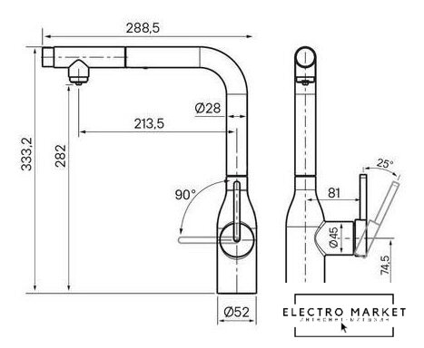 | Поворотный излив | 360 ° |