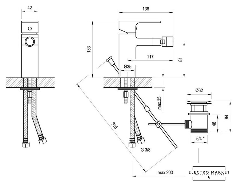 однорычажный смеситель для биде, монтаж на раковину или столешницу