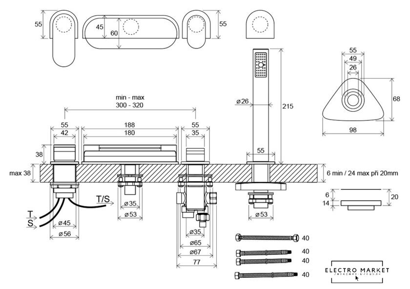 однорычажный смеситель для ванны и душа, монтаж скрытый