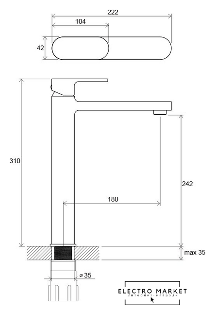 однорычажный смеситель для умывальника, монтаж на раковину или столешницу