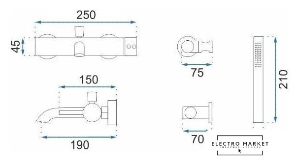 однорычажный смеситель для ванны и душа, монтаж на стену