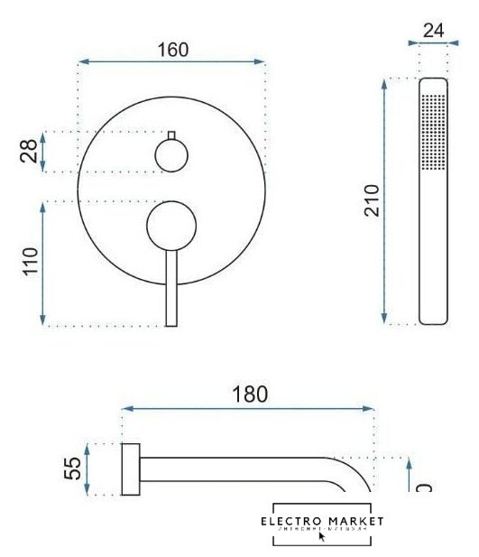 однорычажный смеситель для ванны и душа, монтаж скрытый