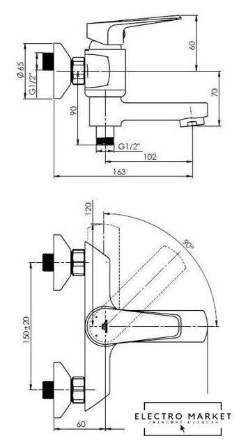 однорычажный смеситель для ванны и душа, монтаж на стену