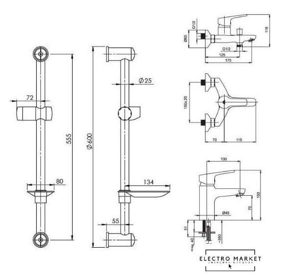 Высота | 118 мм (150 мм - смеситель для умывальника) |