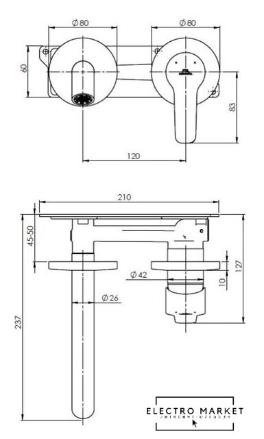 однорычажный смеситель для ванны и душа, монтаж на стену