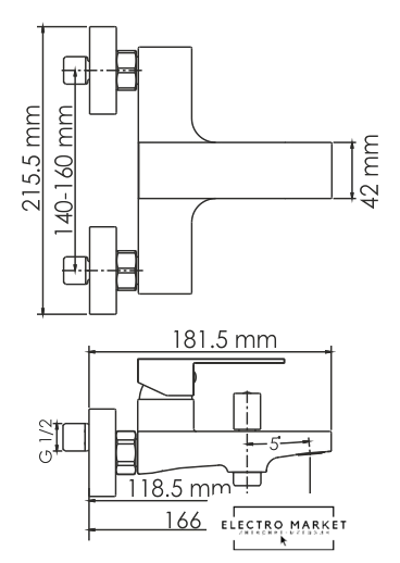 | Длина (вылет) излива | 166 мм |