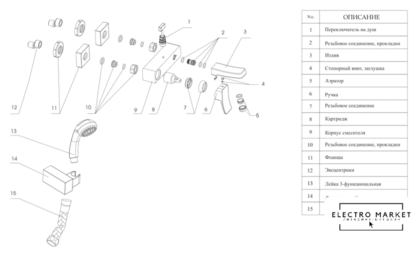 однорычажный смеситель для ванны и душа, монтаж на стену