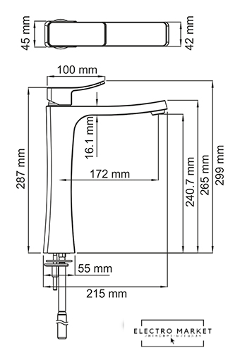 однорычажный смеситель для мойки, монтаж на раковину или столешницу