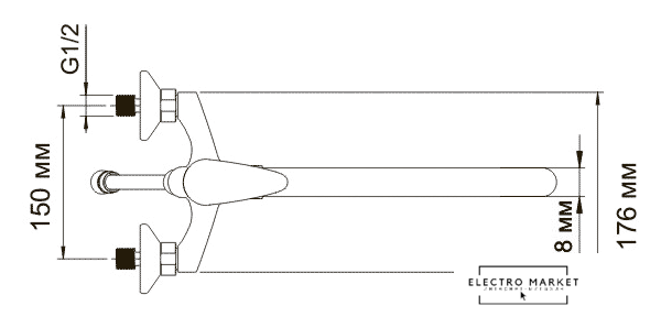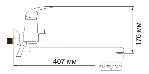 однорычажный смеситель для ванны и душа, монтаж на стену