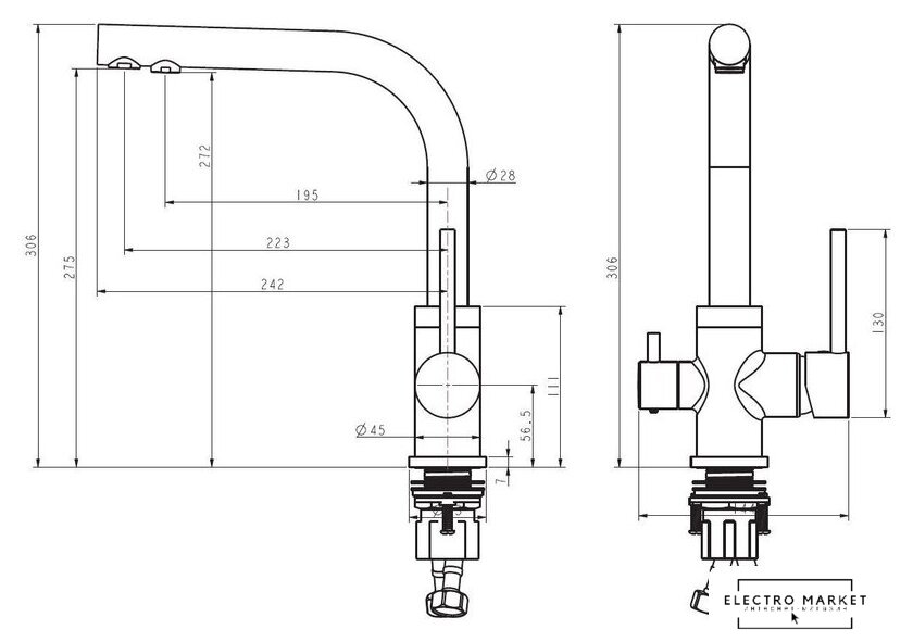 однорычажный смеситель для мойки, монтаж на раковину или столешницу