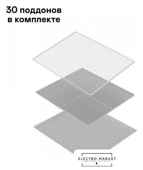 Комплектация | уровень для овощей и фруктов 10 шт.; поддон для приготовления пастилы 10 шт.; сетка для сушки трав 10 шт.; руководство пользователя; краткая инструкция пользователя; гарантийный талон |