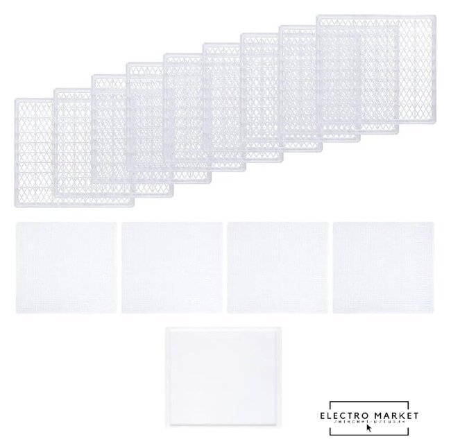 | Комплектация | поддон для пастилы 9 шт., поддонов 9 шт., поддонов для сушки мелких продуктов 9 шт. |