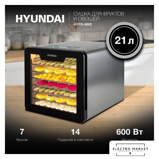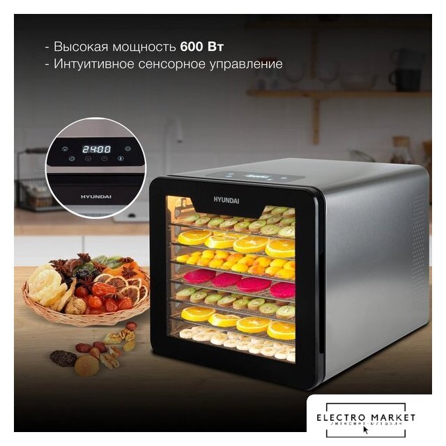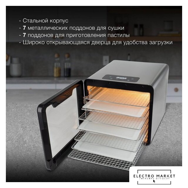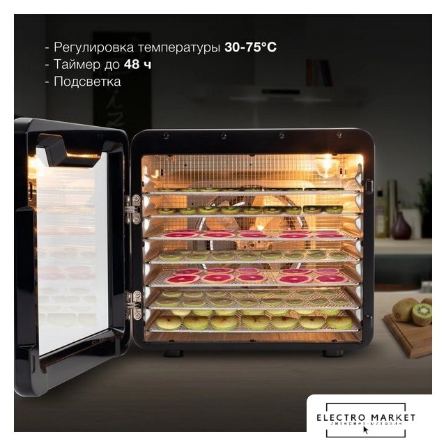 800 Вт, 6 подносов, электронное управление, сбоку нагревательный элемент