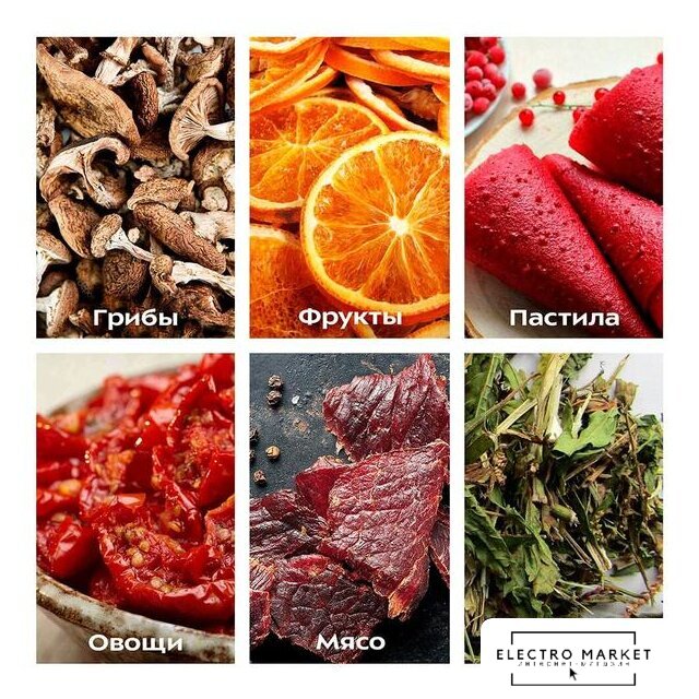 Комплектация | - 6 поддонов для сушки;- 1 поддон для жидкости. |