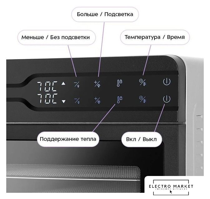 700 Вт, 8 подносов, сенсорное управление, сбоку нагревательный элемент
