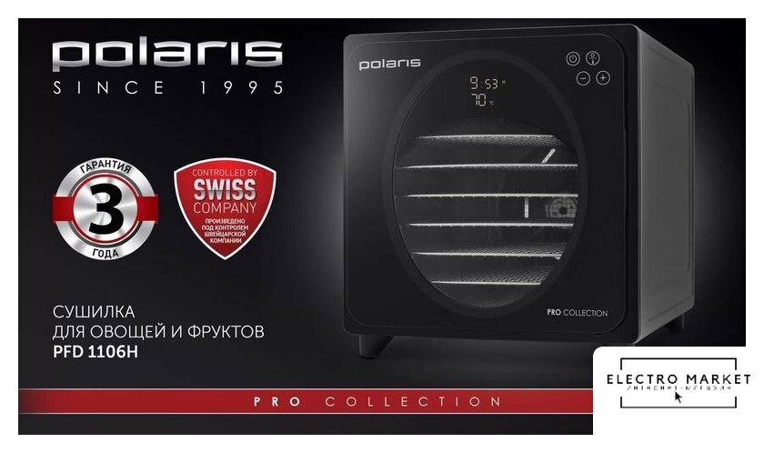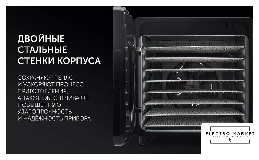 1000 Вт, 10 подносов, электронное управление, сбоку нагревательный элемент