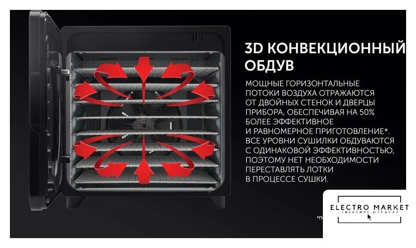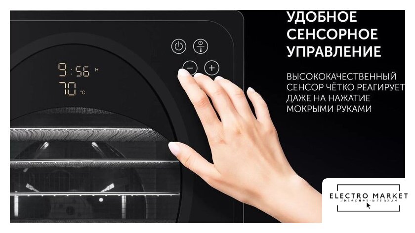 520 Вт, 6 подносов, сенсорное управление, сбоку нагревательный элемент