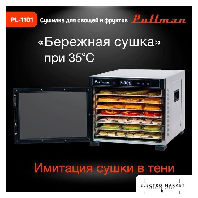1000 Вт, 6 подносов, электронное управление, сбоку нагревательный элемент