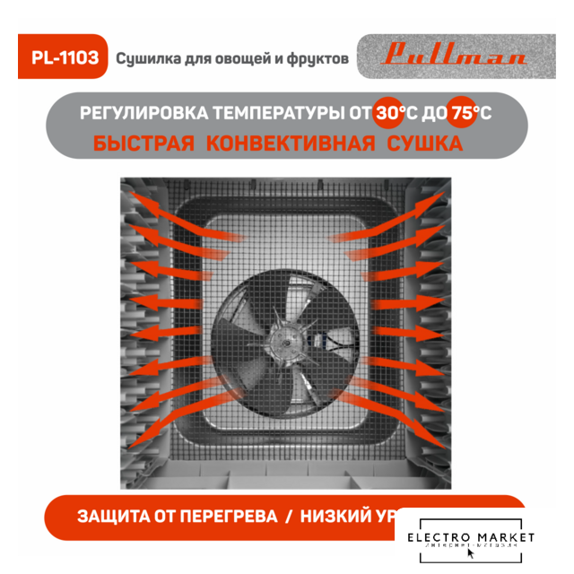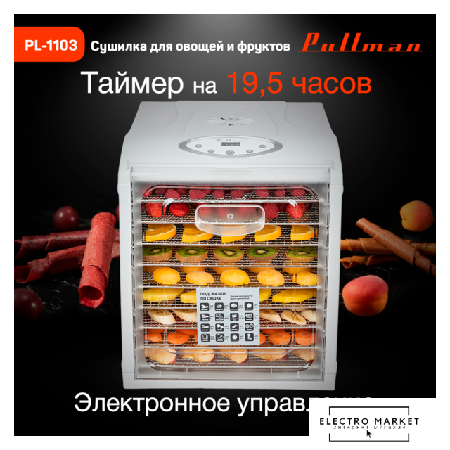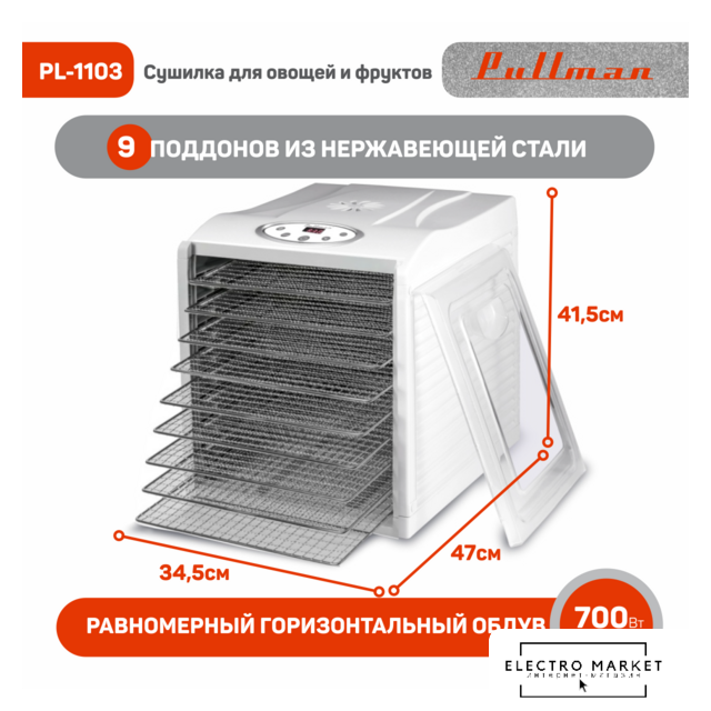 500 Вт, 6 подносов, электронное управление, сбоку нагревательный элемент