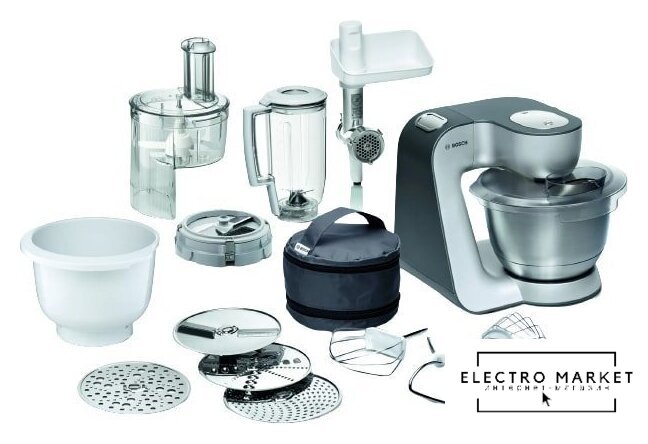 1000 Вт, планетарное смешивание, объем чаши: 3.9 л, терки, мясорубка, соковыжималка, блендер
