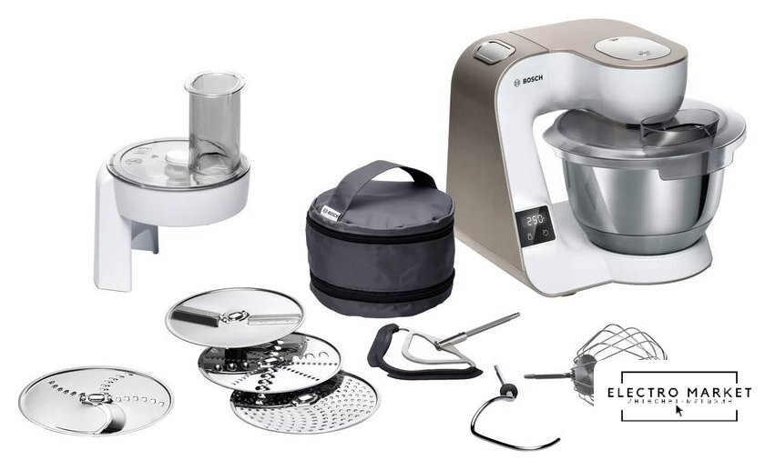 1000 Вт, планетарное смешивание, объем чаши: 3.9 л, терки, мясорубка, соковыжималка, блендер