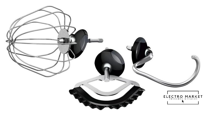 | Полная комплектация | Профессиональный набор насадок для получения идеальных результатов: венчик с силиконовым покрытием, объемный венчик для взбивания (с регулировкой высоты), крюк для теста. |