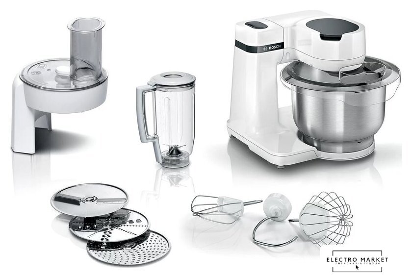 700 Вт, планетарное смешивание, объем чаши: 3.8 л, терки, мясорубка, блендер