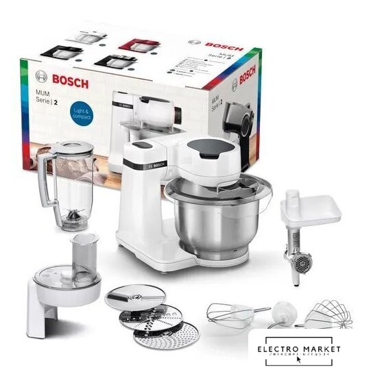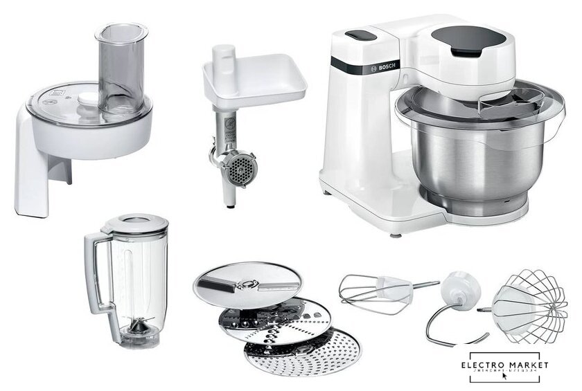 | Функции | мясорубка, блендер, взбивание, смешивание, замешивание дрожжевого теста, терка, шинковка, ломтерезка |