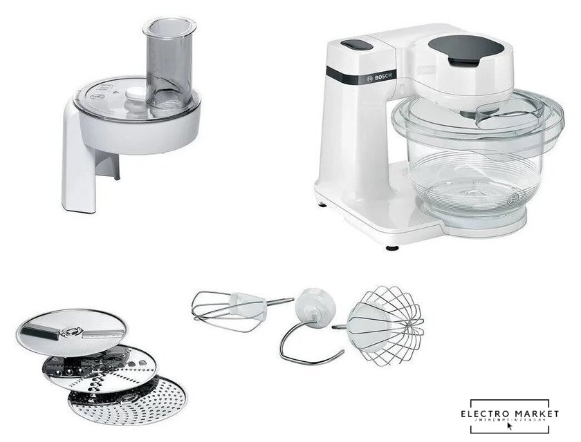 700 Вт, планетарное смешивание, объем чаши: 3.8 л, терки
