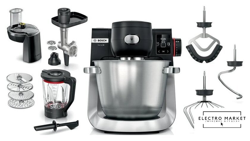 1600 Вт, планетарное смешивание, объем чаши: 5.5 л, терки, мясорубка, блендер