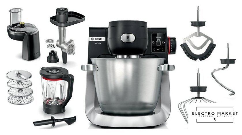 1600 Вт, планетарное смешивание, объем чаши: 5.5 л, терки, мясорубка, блендер
