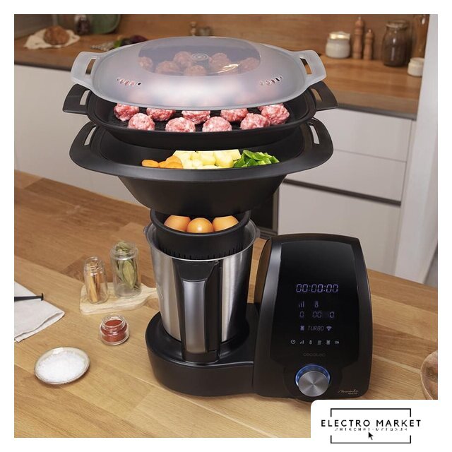 | Функции | взбивание, смешивание, замешивание дрожжевого теста, измельчитель, рубка, пароварка, помол круп, кофе, температурная обработка (нагрев) |