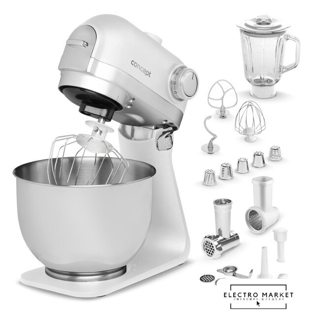 1200 Вт, планетарное смешивание, объем чаши: 6.7 л, терки, мясорубка, блендер