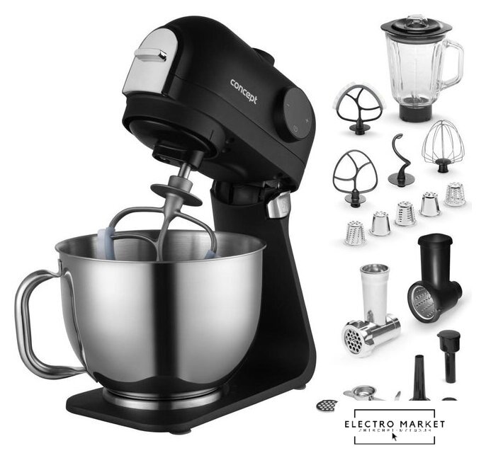 1200 Вт, планетарное смешивание, объем чаши: 5 л, терки, мясорубка, блендер