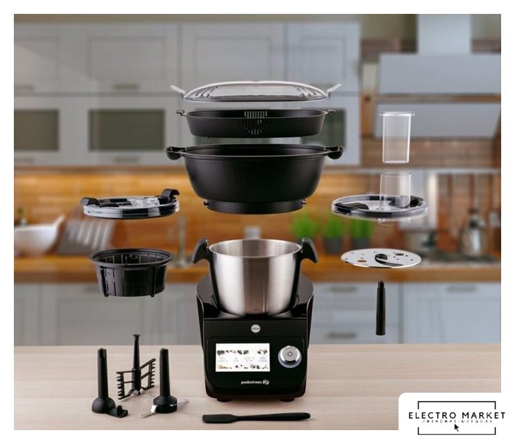 | Функции | взбивание, смешивание, замешивание дрожжевого теста, терка, шинковка, ломтерезка, пароварка, температурная обработка (нагрев) |
