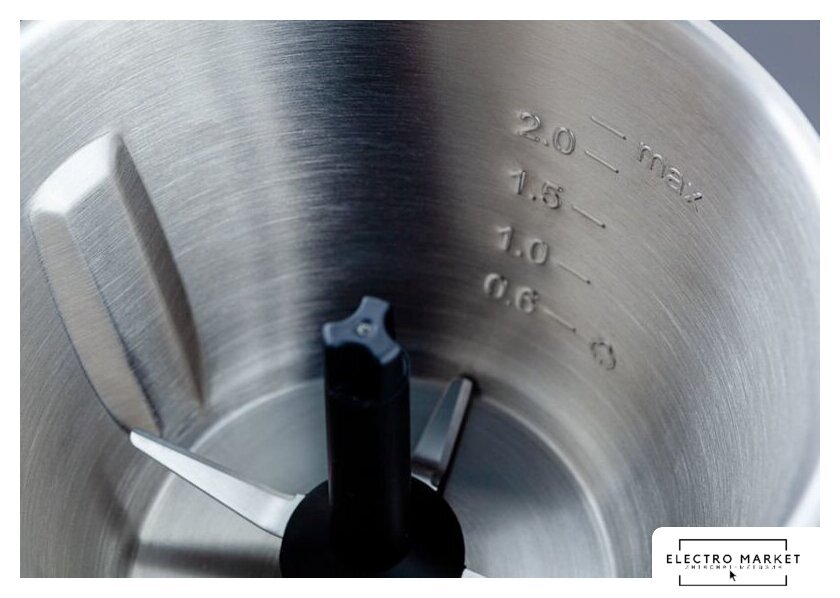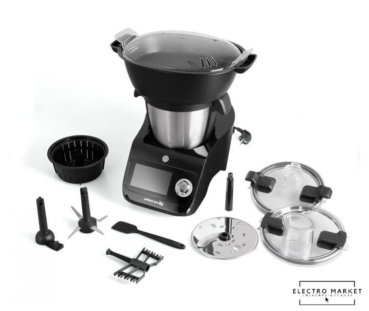 | Полная комплектация | Чаша для смешивания из нержавеющей стали емкостью 3,5 л (рабочий объем 2 л), крышка с отверстием, мерный стакан, нож для нарезки, венчик, насадка для смешивания, лопатка, корзина для приготовления на пару и воде, набор для приготовления на пару (контейнер + противень) + крышка) два диска: для шинковки на стружку и ломтики, и для измельчения овощей и фруктов |