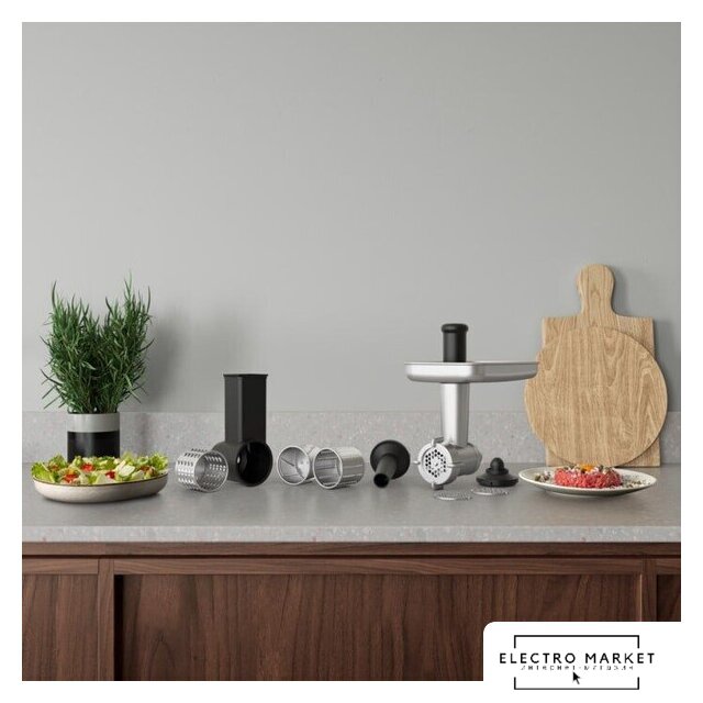 1200 Вт, планетарное смешивание, объем чаши: 6.7 л, терки, мясорубка, блендер